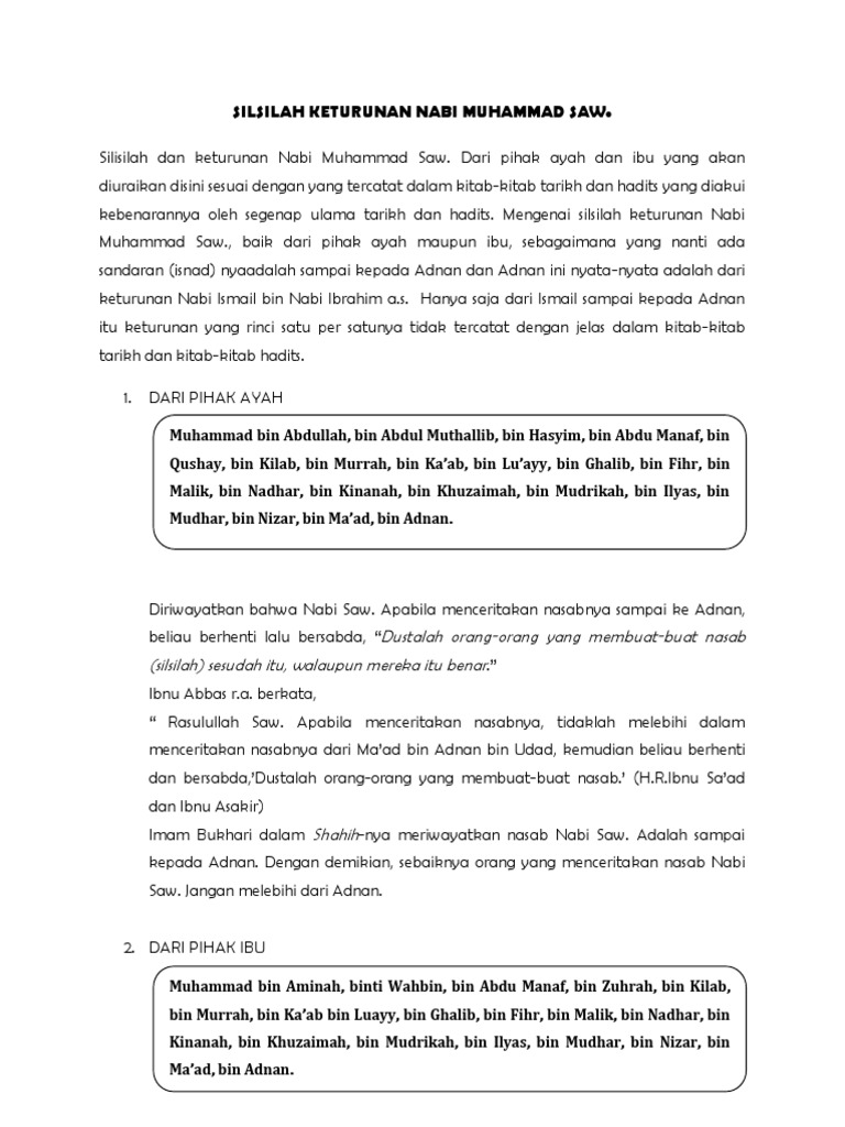 Silsilah nabi muhammad saw dari pihak ayah. Check spelling or type a new query. We did not find results for: Maybe you would like to learn more about one of these?